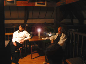 ■研修・打ち合わせ ろうそくの灯火、BGMで静かに流れるスタンダードJAZZ、そして暖炉の温もり。このシチュエーションに似合わない真剣な打ち合わせが続いています。 |